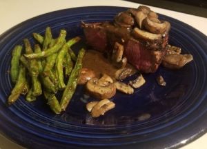 "Pulled a beautiful Antelope Creek Ranch Wagyu London Broil from our freezer this morning. This evening, we grilled and served with roasted green beans, sauteed crimini mushrooms and handmade herbed demi-glace.